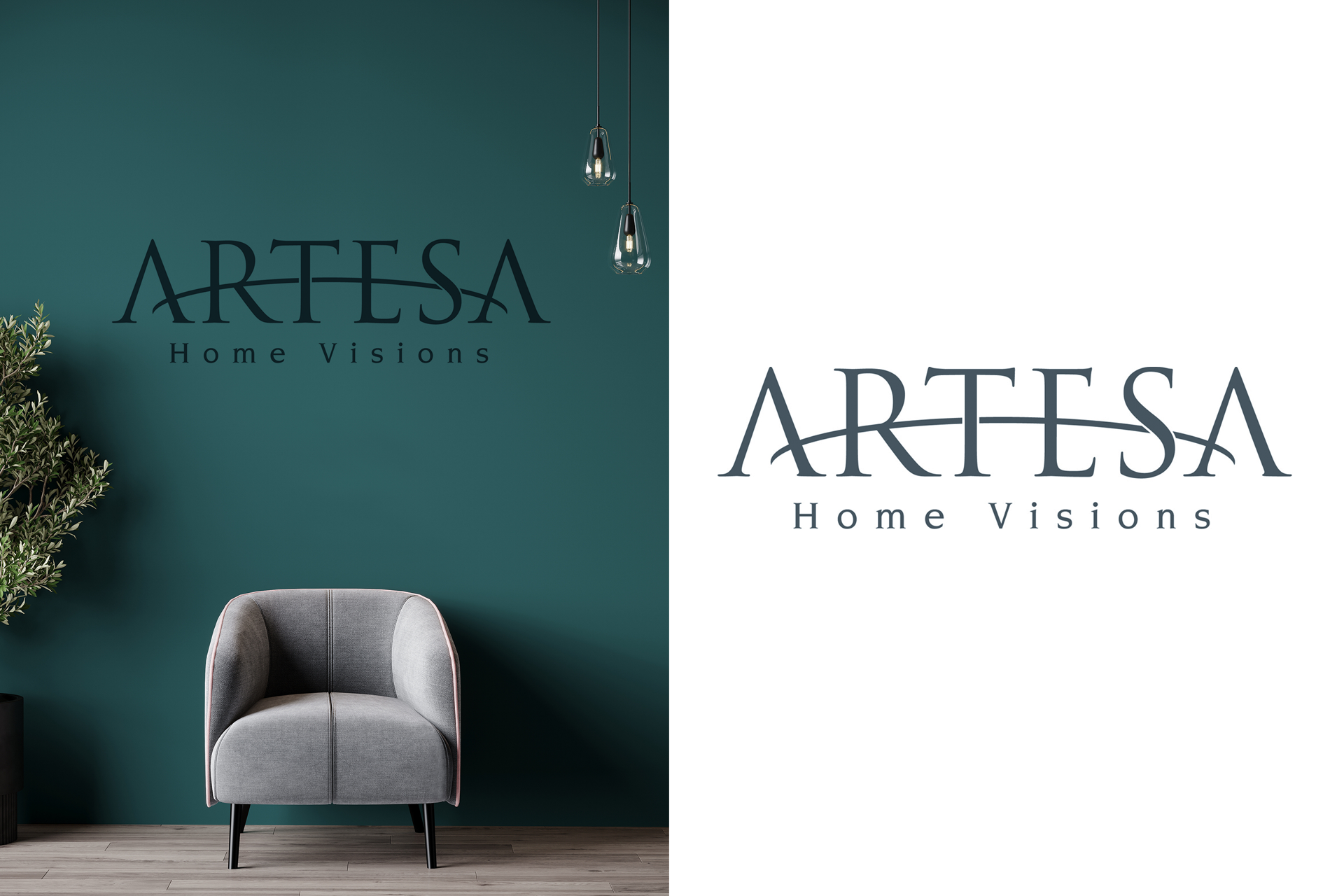 Created through an extensive exploration of styles and iterations, this elegant wordmark features bespoke letterforms and a sweeping crossbar that reflect the company’s focus on refined home design and architectural vision.