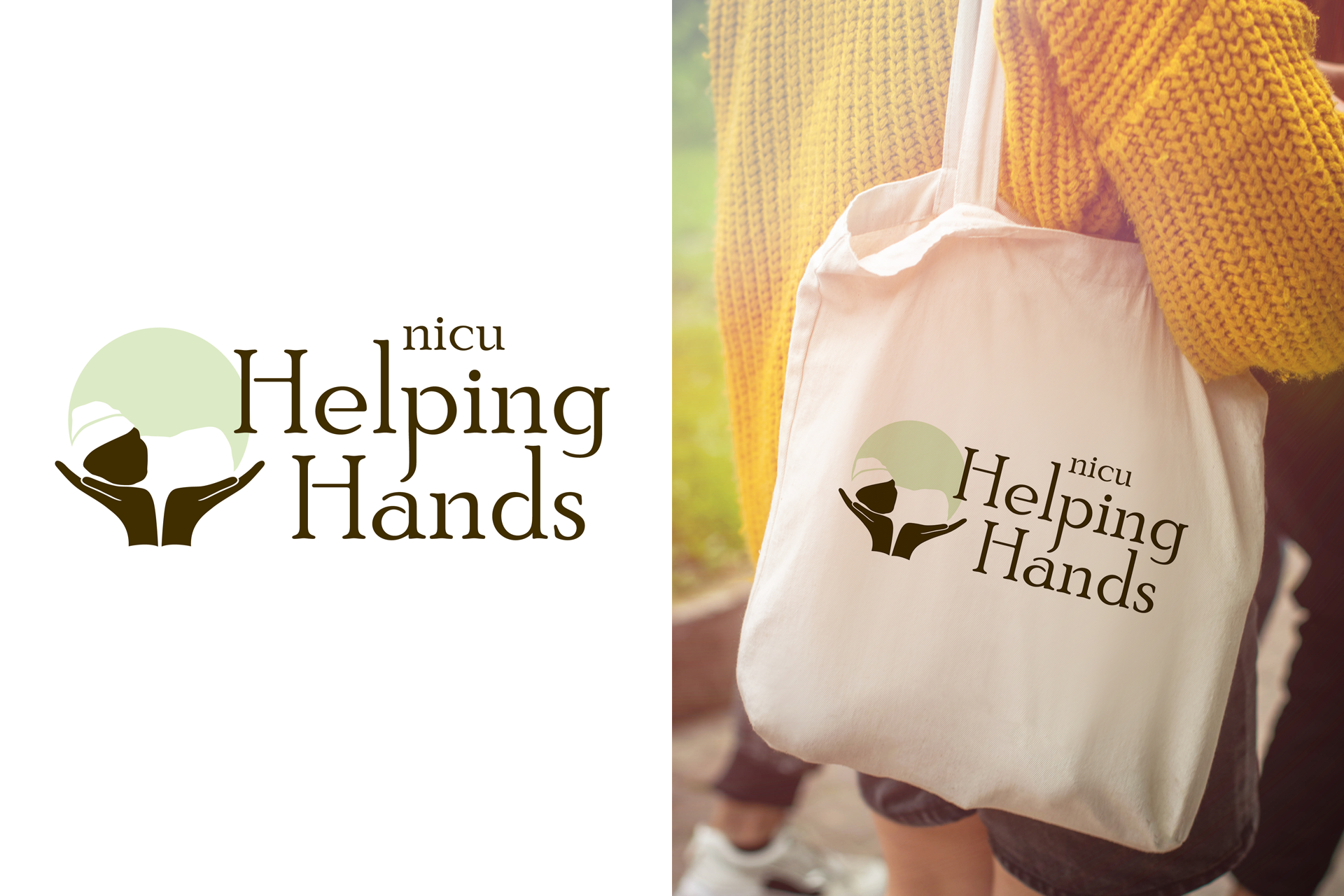Created for a nonprofit supporting families experiencing NICU stays and infant loss, this logo centers on a stylized infant held within open hands to convey comfort, care, and dignity. The soft palette and classic typography reinforce the organization’s warm, compassionate mission.