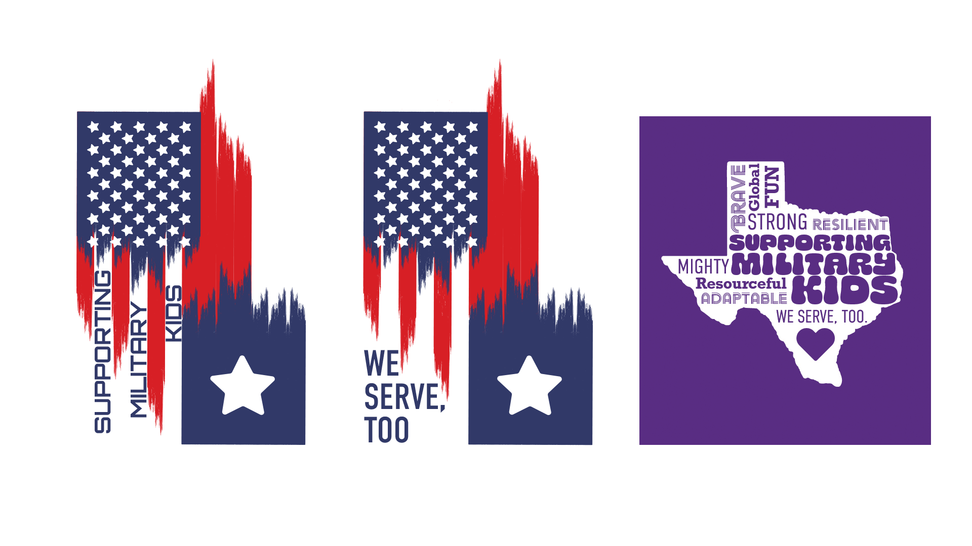 The first concept featured a motif that blended elements of the U.S. and Texas flags using sharp vertical stripes. While visually striking, it felt severe and unintentionally political. Because the cohort’s identity needed to remain apolitical, I guided the team away from flag-based imagery and toward more neutral expressions of place.